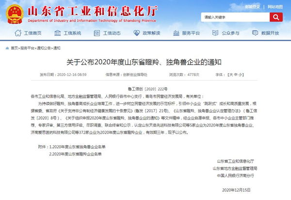 热烈祝贺悦龙科技获批2020年山东省瞪羚企业
