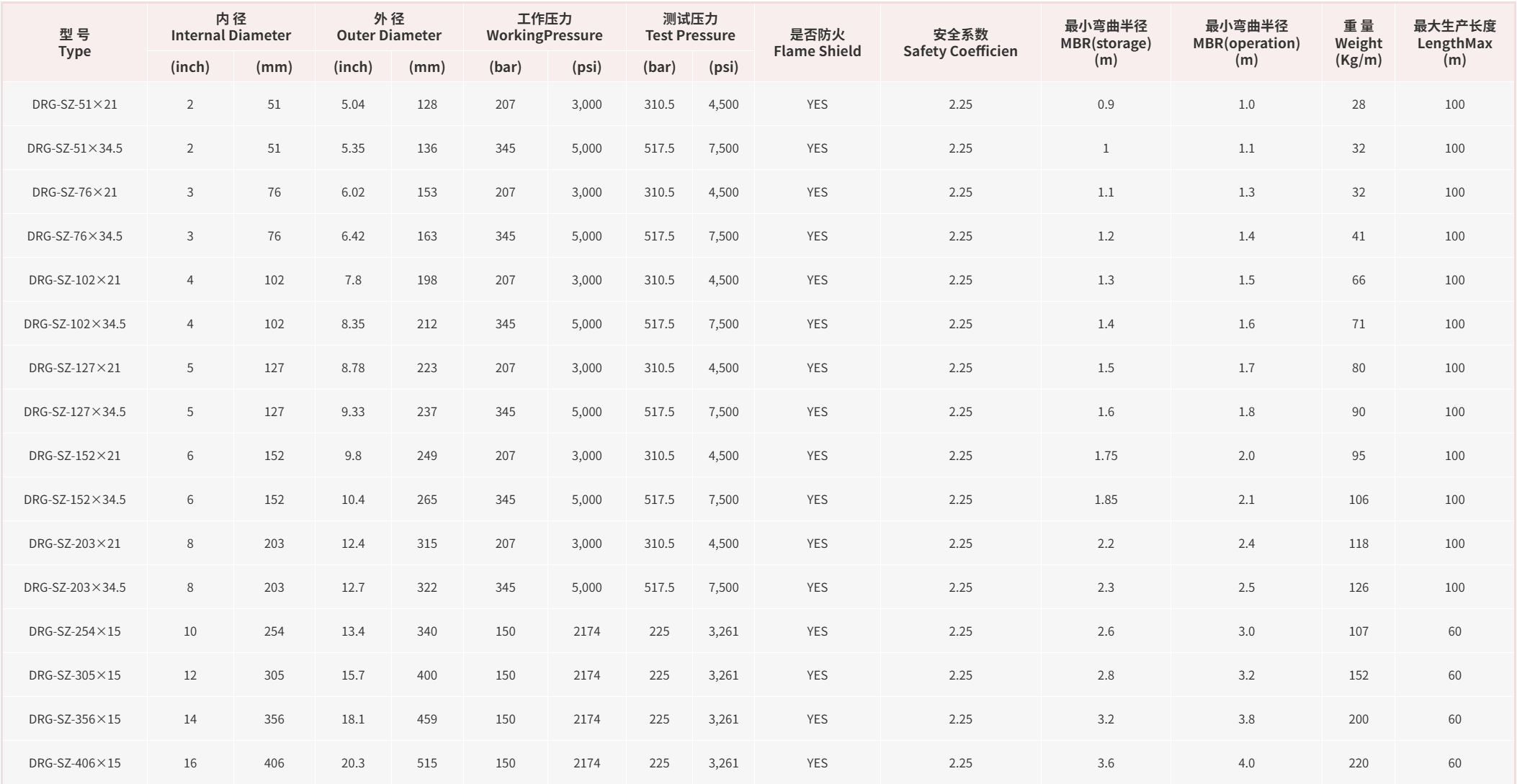 • Maximum continuous length: 2”-8” 100M; 0”-16” 60M