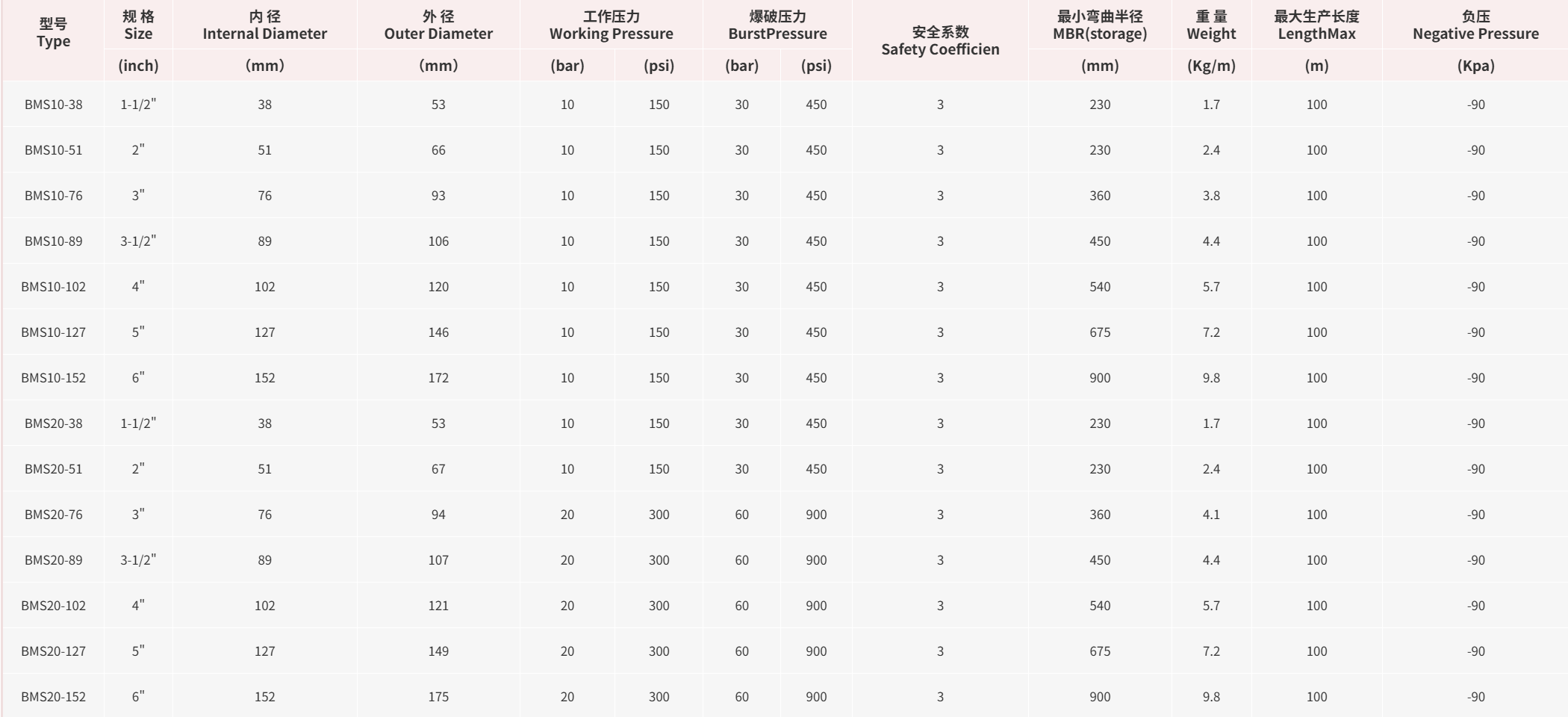 • Application:Suction and discharge of highly abrasive dry bulk materials such as cement, sand, gravel, lime and similar abrasive materials under negative pressure (vacuum) up to -0.9 bar, inner lining features with abrasion ≤ 100 mm³ per ISO4649.