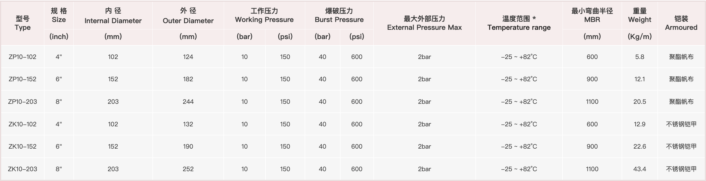 Reinforcment: high tension textile with embedded helix wire and anti-static copper wire;