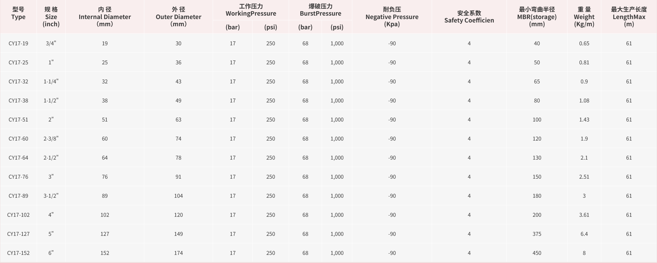 增强层: 高强力帘布缠绕 / 线绳缠绕,螺旋钢丝增强;